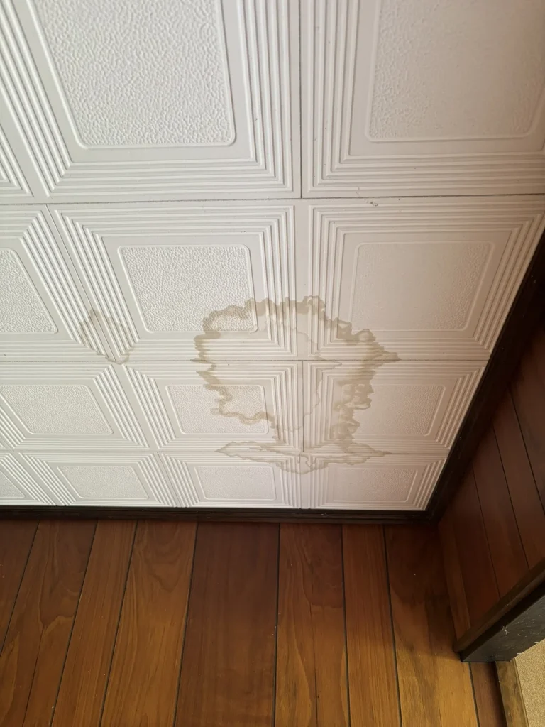 実際に現地へ伺って天井を見上げると、大きなシミがくっきり。