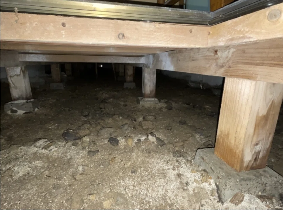 比較として、問題のある床下の写真もお見せします。こういう状態だと修繕に大きな費用がかかります。今回の物件は全くこの心配がありませんでした。
