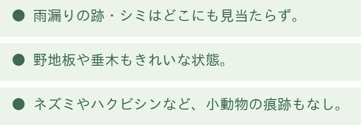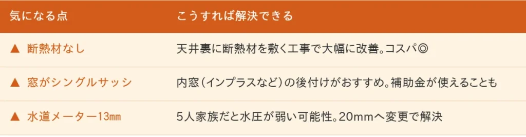 良い物件ですが、完璧な中古住宅なんてありません。大事なのは「事前に把握して、ちゃんと対策できるかどうか」です。