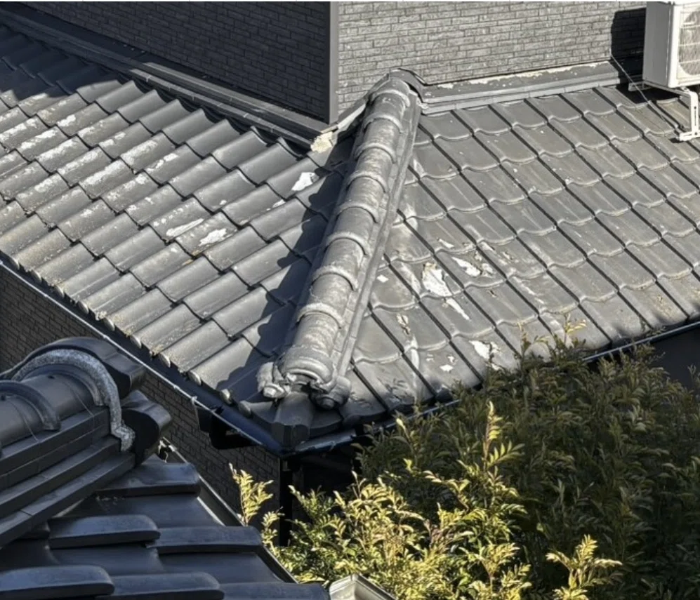ちなみに、悪い例がこちら。瓦がハジけていたり、剥がれや棟の劣化あります。