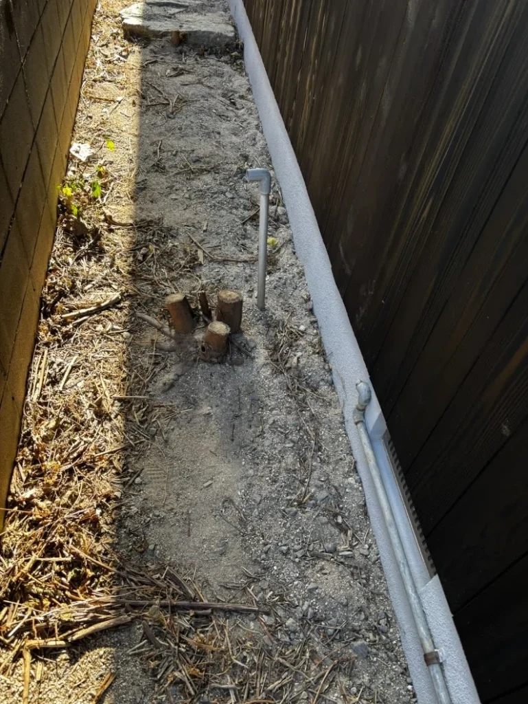 敷地をぐるっと回っていたら、地面からちょこんとパイプが出ているのを見つけました。「これ何ですか?」と思う方も多いと思いますが、実はこれ、この敷地にかつてあった井戸の「息抜きパイプ」です。