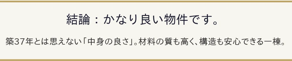 今回のレポートは以上です。いかがでしたか? 「プロはこんなところまで見るんだ」「素人じゃ絶対分からない」――そう感じていただけたなら、このレポートを書いた甲斐があります。